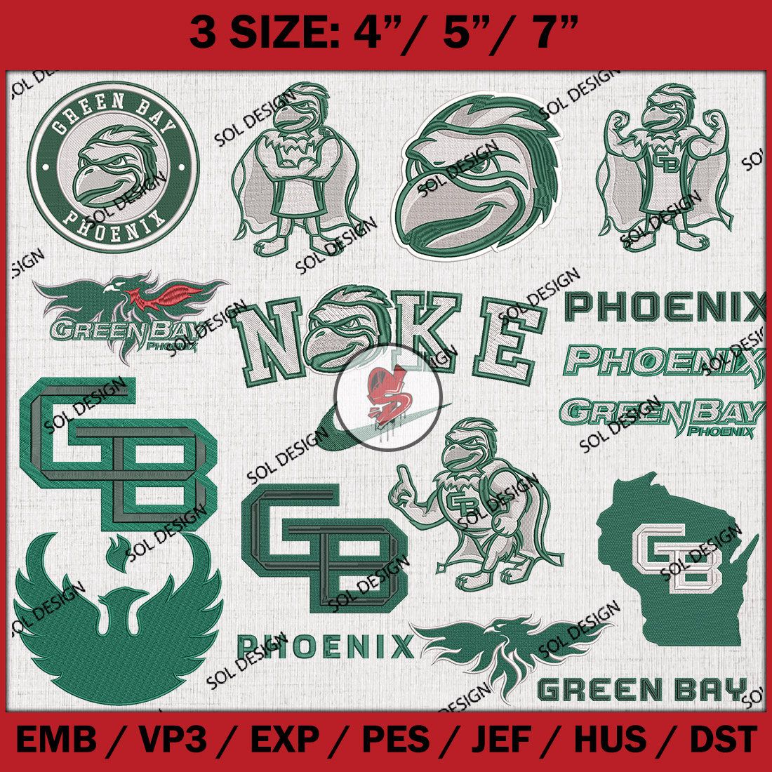 16 Green Bay Phoenix Bundle Embroidery Files, College Football Embroidery Designs, NCAA Green Bay Phoenix Machine embroidery Design Bundle, Ncaa GB Phoenix Logo bundle, Digital Download