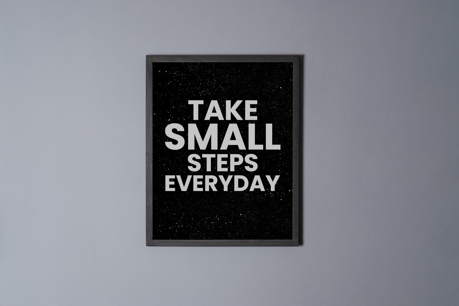 Take Small Steps Every Day is an inspiring wall art printable that celebrates the power of consistent effort and gradual progress. With its clean design and motivational message, this piece serves as a reminder that big results come from small, consistent actions. Display it in your home or office as a reminder to keep moving forward.
