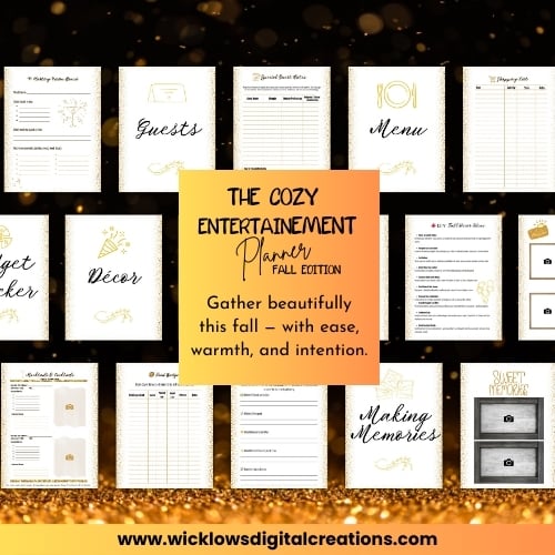 This softly-structured planner guides you through every stage of entertaining, from welcoming guests to savoring memories afterward. With guest lists, menu planning, budget trackers, décor inspiration, and reflection pages, it’s your cozy alternative to stressful schedules and last-minute scrambling.