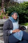 Third Vault Yarns Glow DK “Starless night” held together with Kid fluff “Moon Children”