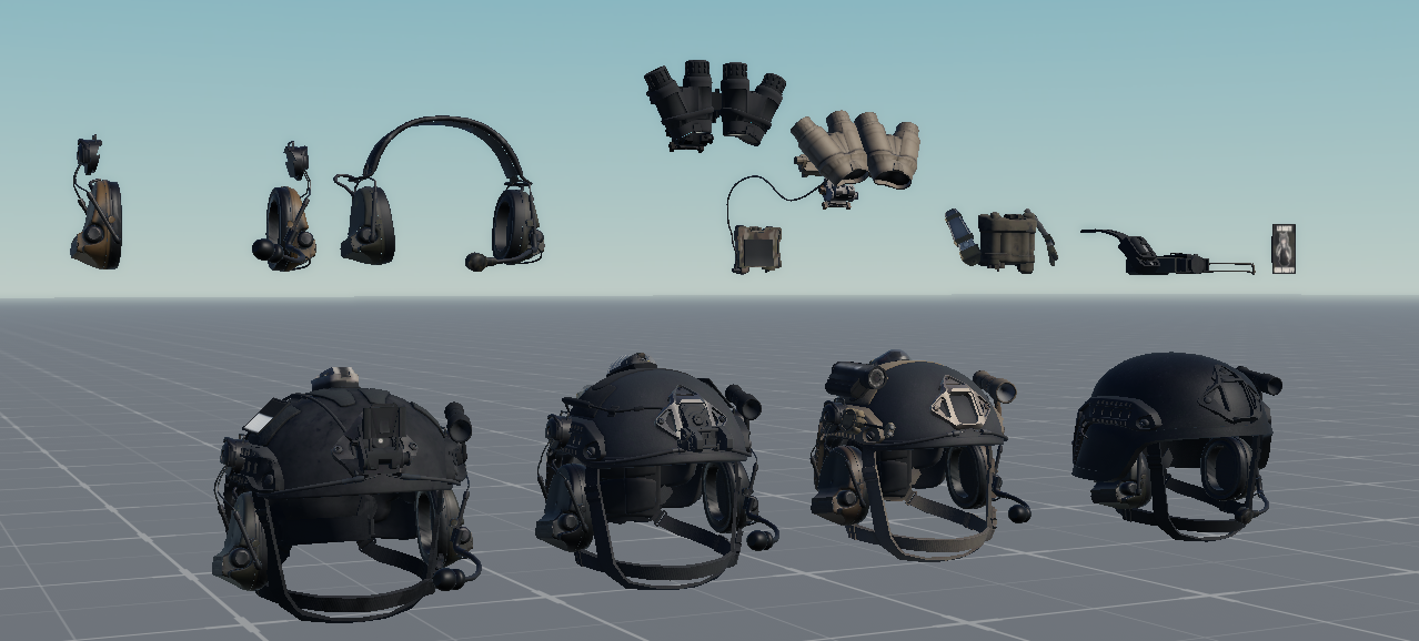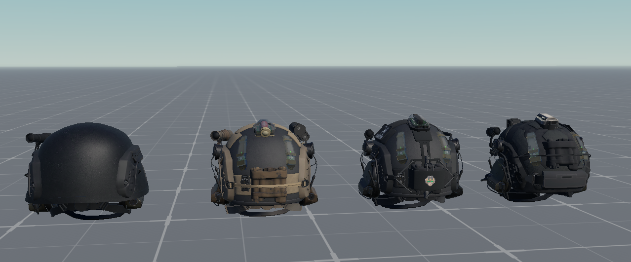 Kojichamas TAU helmets retextured to black, with a few accessories.