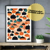A digital file for printing; Halloween pumpkins poster art for night party. Wallart printable for october party Vintage halloween party