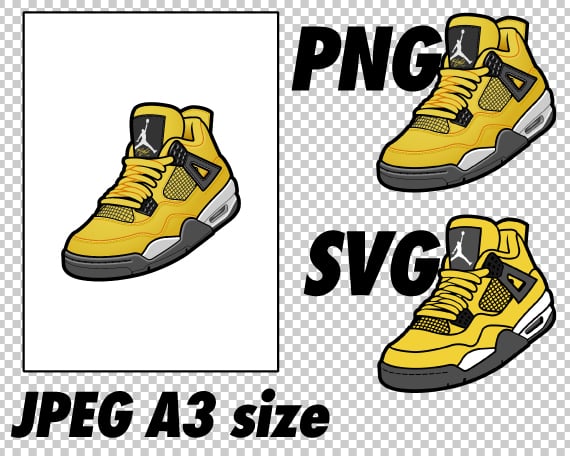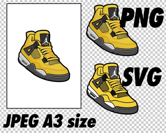 Air Jordan 4 Lightning JPEG PNG SVG digital sneaker art