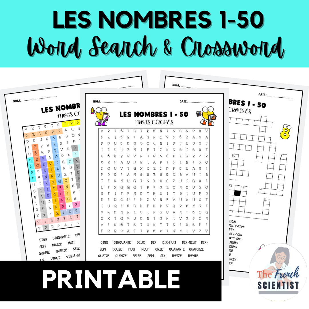Les Nombres 1-50 Word Search & Crossword Activities are perfect for beginner-level French learners to practice French numbers in a fun way!
