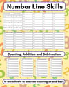 Solve simple addition and subtraction problems by counting on and back on the number line. 16 worksheets in total includes 2 sheets each of: