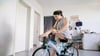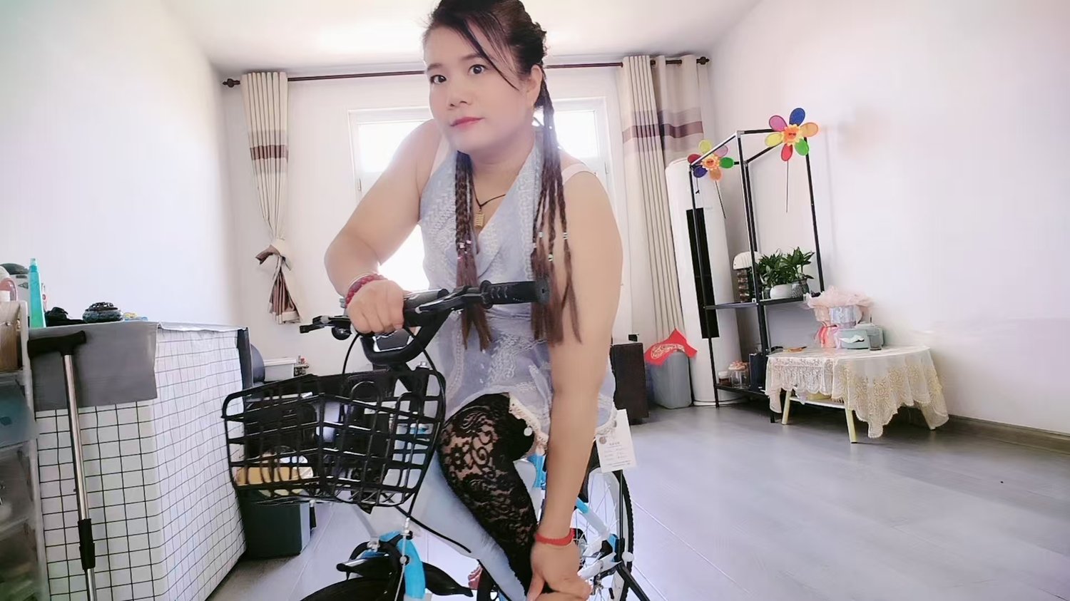 Today, she received a children's bike with training wheels, and she immediately climbed on it to experience the feeling of riding a bicycle.