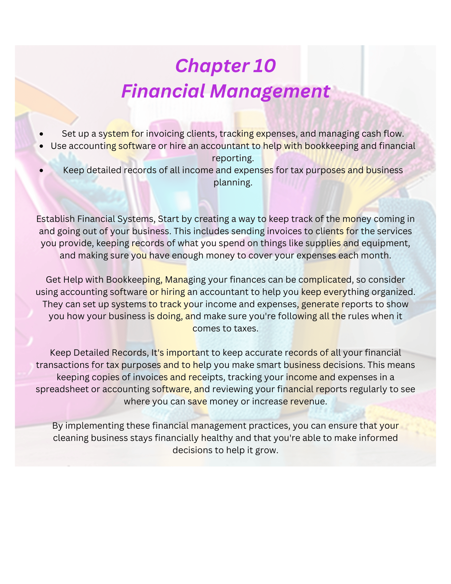 - Step-by-Step Guidance: Detailed instructions on every aspect of starting and running a cleaning service, from business planning to day-to-day operations.