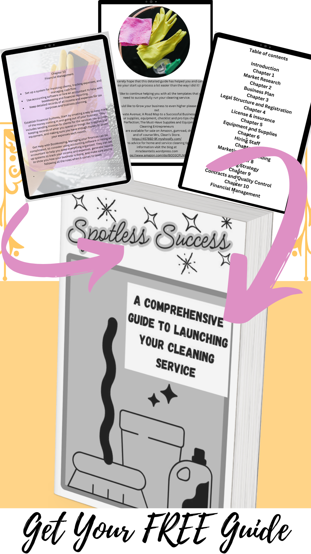 Turn your dream of owning a successful cleaning service into reality with "Spotless Success: A Guide to Starting a Cleaning Service." Download your copy today and embark on your journey to entrepreneurial success!