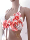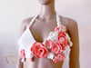 Dieses handgefertigte weiße Häkeltop aus 100 % Baumwolle ist ein einzigartiges und besonderes Stück. Geschmückt mit zarten Blumen, Rosenknospen und Glockenblumen in Korallentönen ist es perfekt für jeden Sommeranlass. Stellen Sie sich vor, Sie ziehen dieses frische und leichte Top nach einem Tag am Strand an, um mit Freunden auszugehen oder ein Festival zu besuchen.