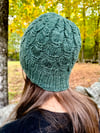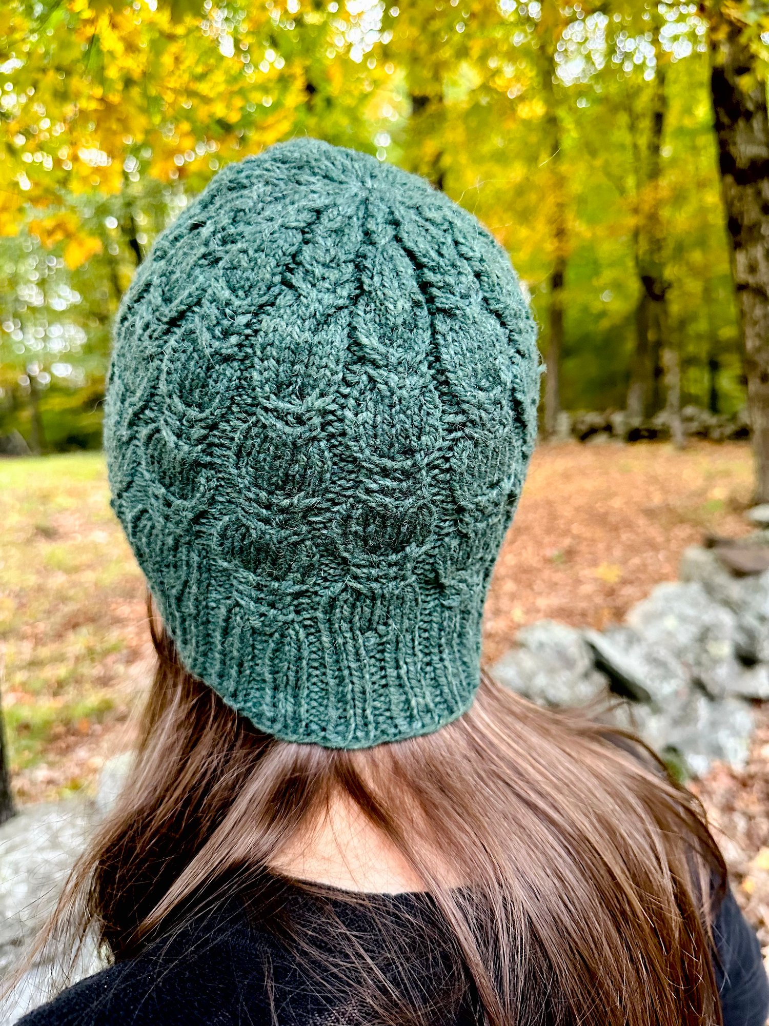 When dreaming up this hat, I imagined one of my ancestors pausing atop a windswept knoll, boots rooted in the springy moss, eyes following clouds rolling over wide, open fields. The land here is ancient, shaped by time and weather, and its rare Atlantic bogs have guarded their treasures for generations—just as the art of Irish knitting has quietly endured through the hands of mothers and daughters, passing stitches and patterns from home to home.