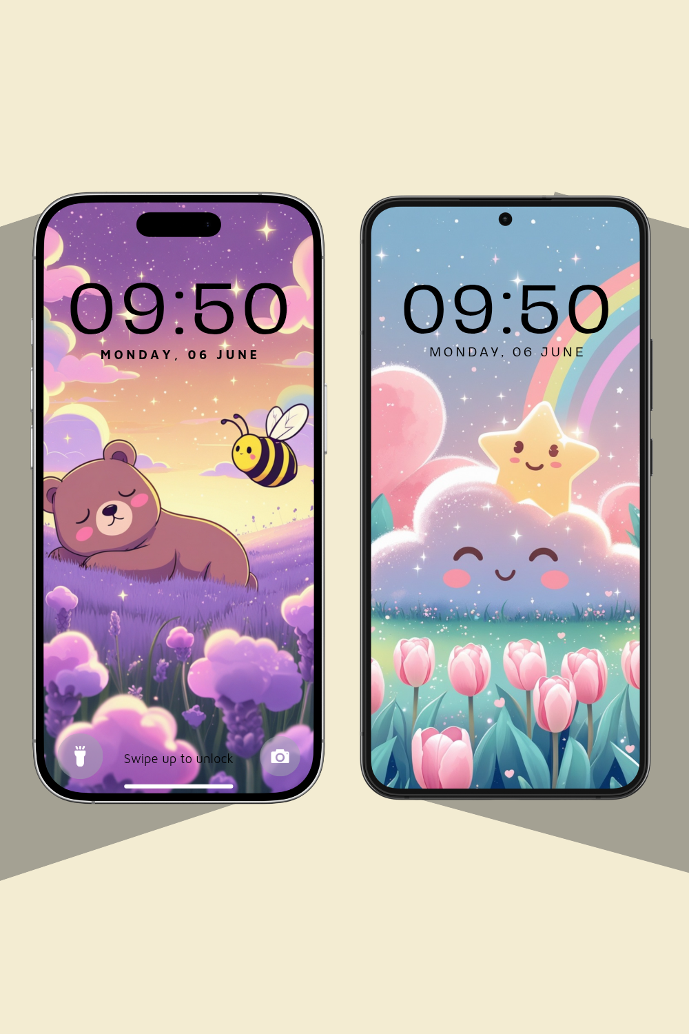 Transform your phone screen into a dreamy escape with this Whimsical Nature Animal Wallpaper Pack! Featuring five beautifully illustrated designs, this bundle brings a charming mix of cuddly animals, pastel clouds, glowing stars, and blooming meadows — perfect for both Android and iPhone users. Each wallpaper is thoughtfully crafted in two aspect ratios for a perfect fit, whether you're using a standard or taller screen.