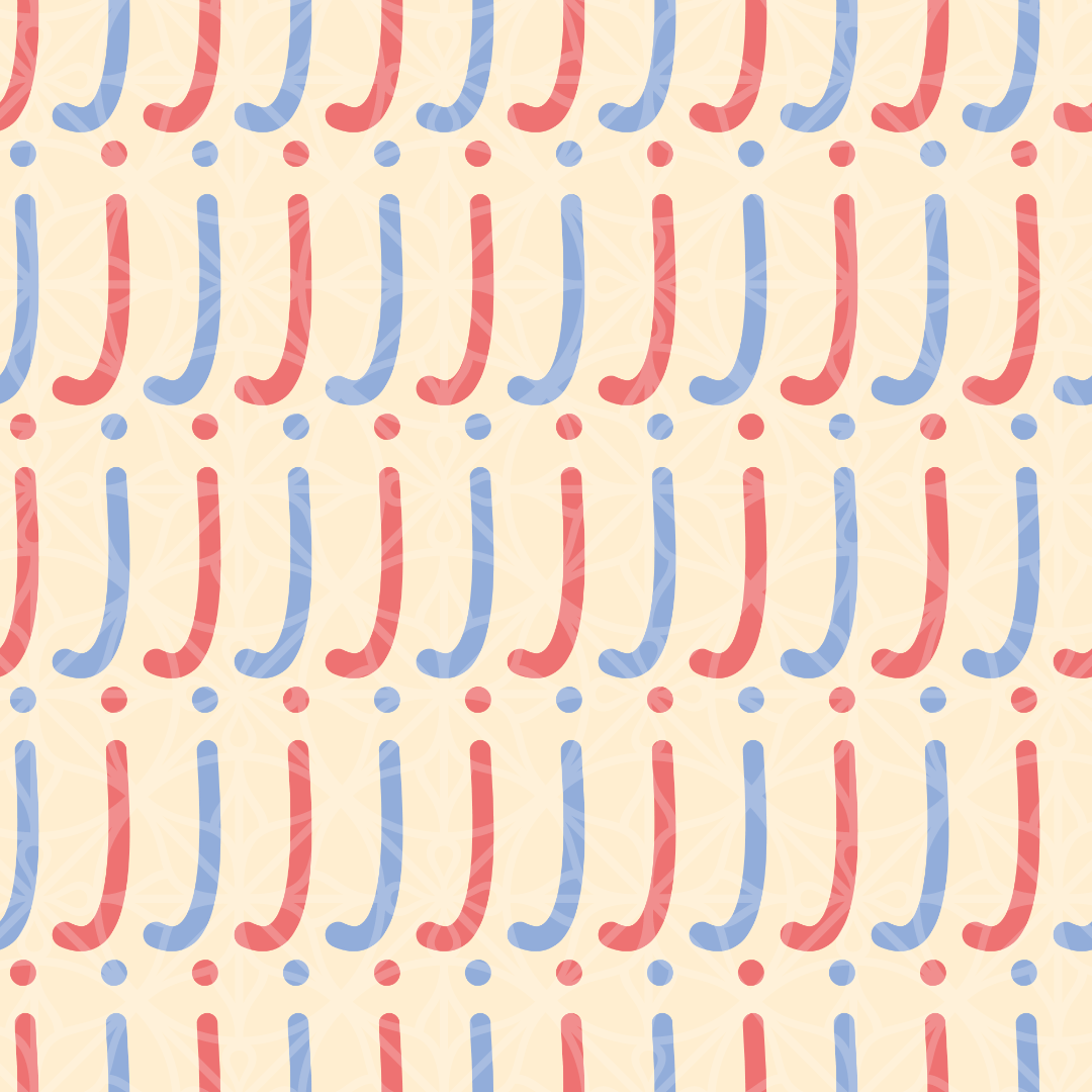 Hand written letter J vector repeat pattern. Lower case character seamless illustration background.