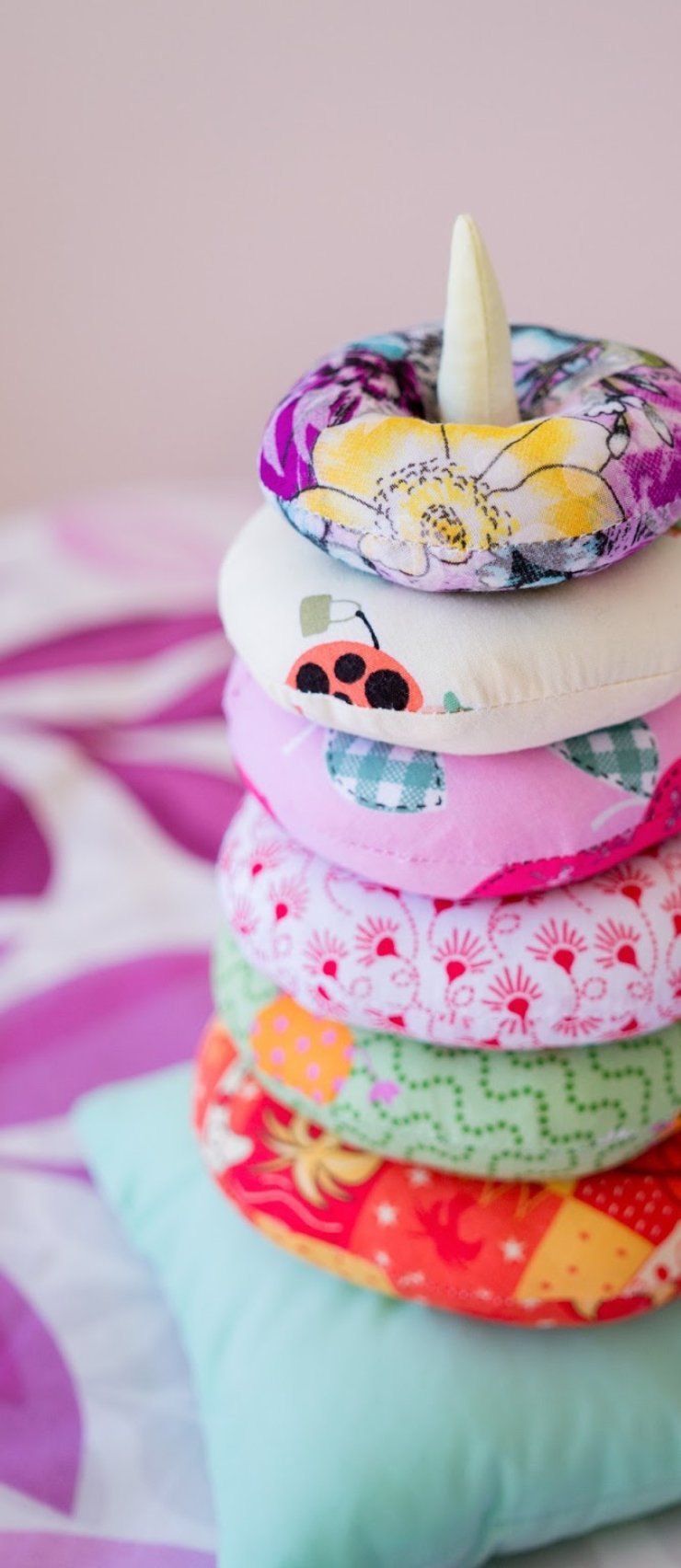 I have decided to start making a few little things for our baby to be. One item that I thought was really cute is a fabric ring stacker. I have seen these online when looking for ideas but all patterns required payment. So I decided to make my own. Below are simple instructions to make the baby rings.