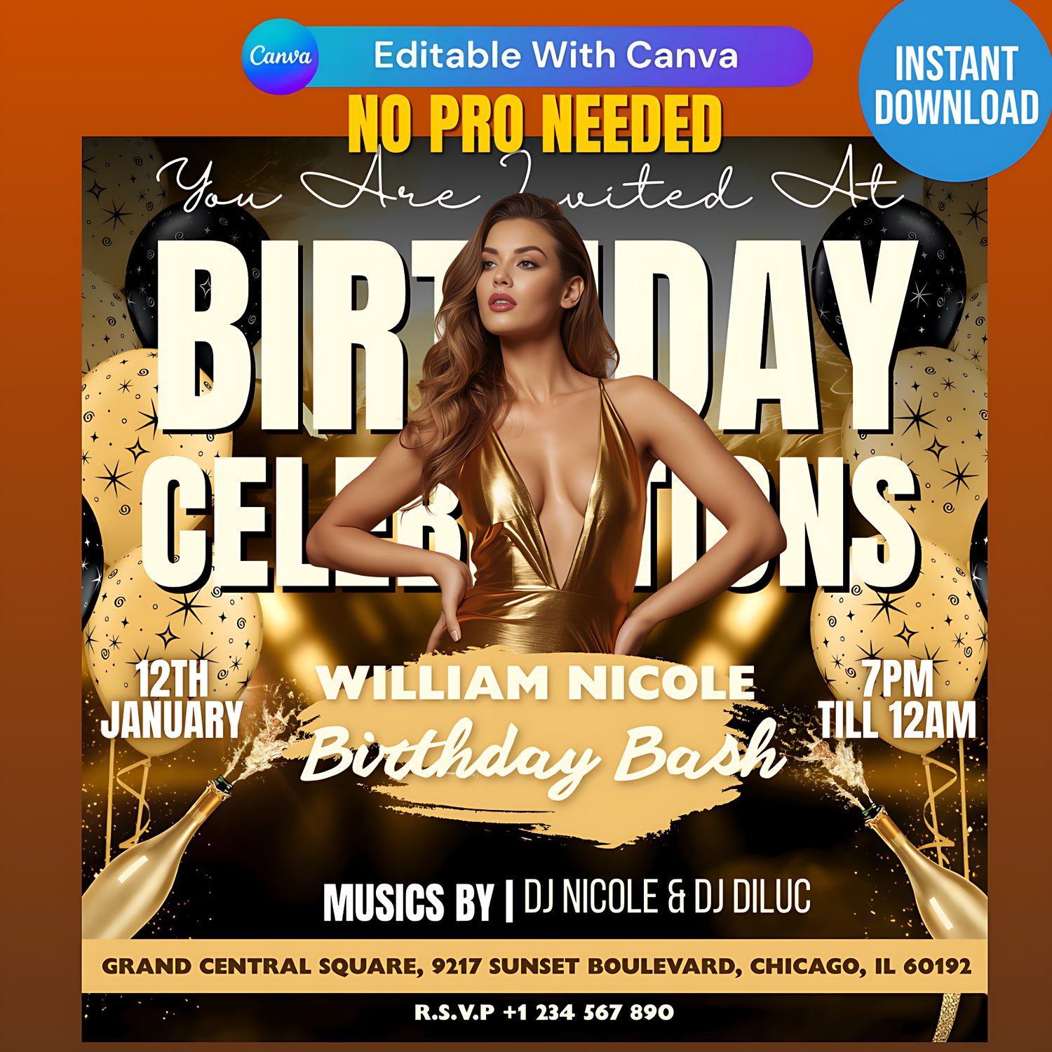 Create a beautiful, modern, and fully customizable birthday party invitation in just minutes! This Canva template is designed for anyone who wants a stylish and professional-looking invitation without needing design skills. Simply open the template in Canva, edit the text, adjust colors, and download your final design—ready to print or share digitally.