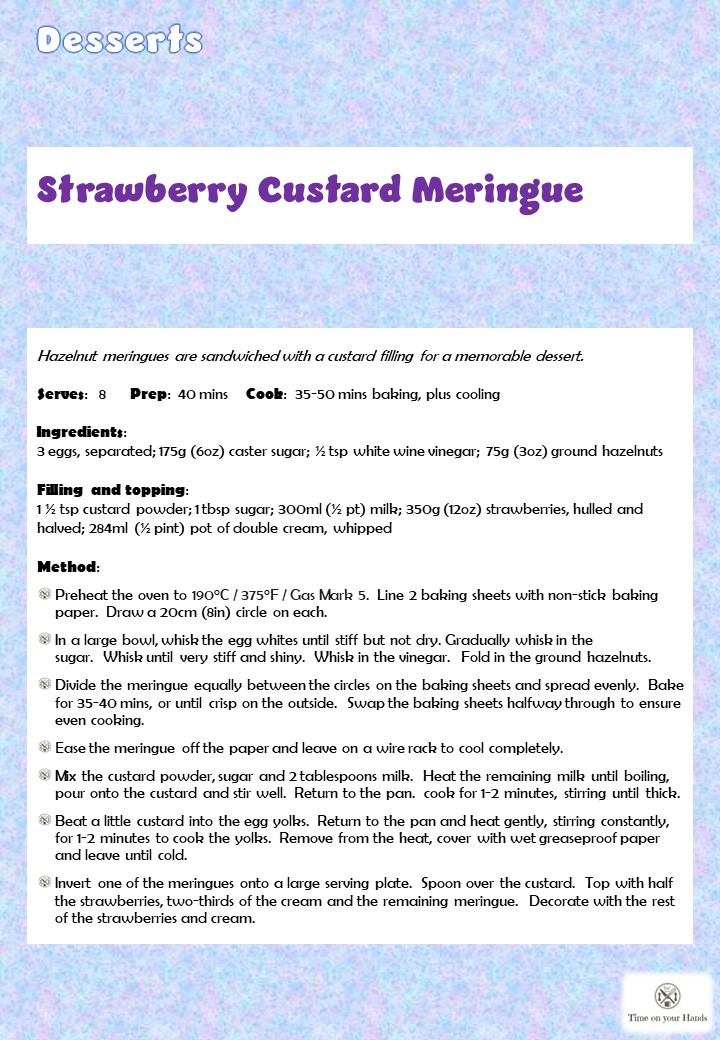 This selection of downloadable recipe cards for Desserts recipes have been taken from the Time on your Hands blog which was started in 2012.