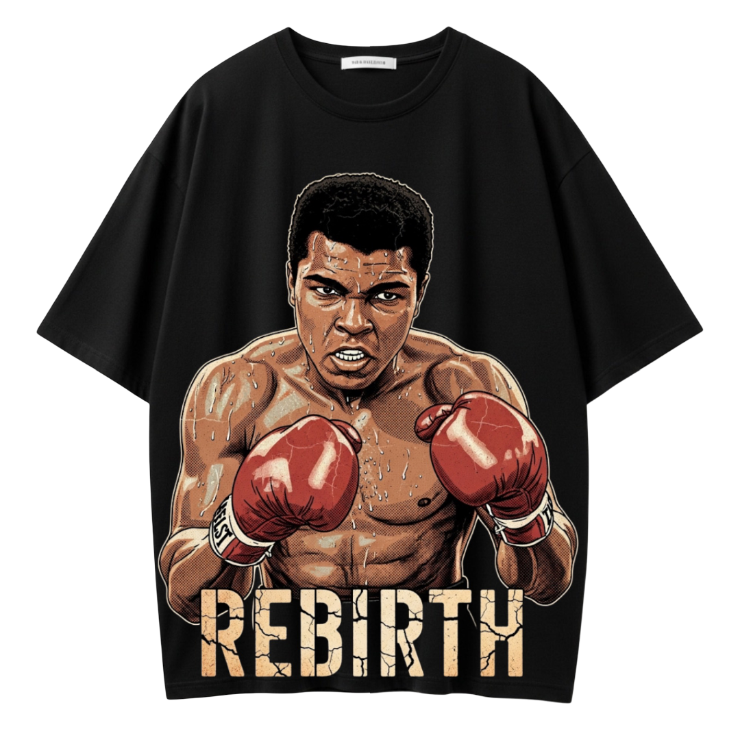 Muhammad Ali Tribute Tee — Step into the ring of style with this iconic tribute to the greatest of all time, Muhammad Ali. Featuring a bold, vintage-inspired portrait that captures his strength, charisma, and legendary spirit, this tee merges streetwear attitude with timeless inspiration. Made from soft, high-quality cotton, it’s perfect for everyday wear or pairing with joggers for a confident, champion-ready look.