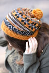 A stunning hat and glove set featuring pretty colourwork pattern. A wonderful slouchy hat is great for showcasing the beautiful shades of Whitfell yarn, with many colour combinations to choose from. Gloves make the perfect companion, ensuring you have warm and toasty fingers.