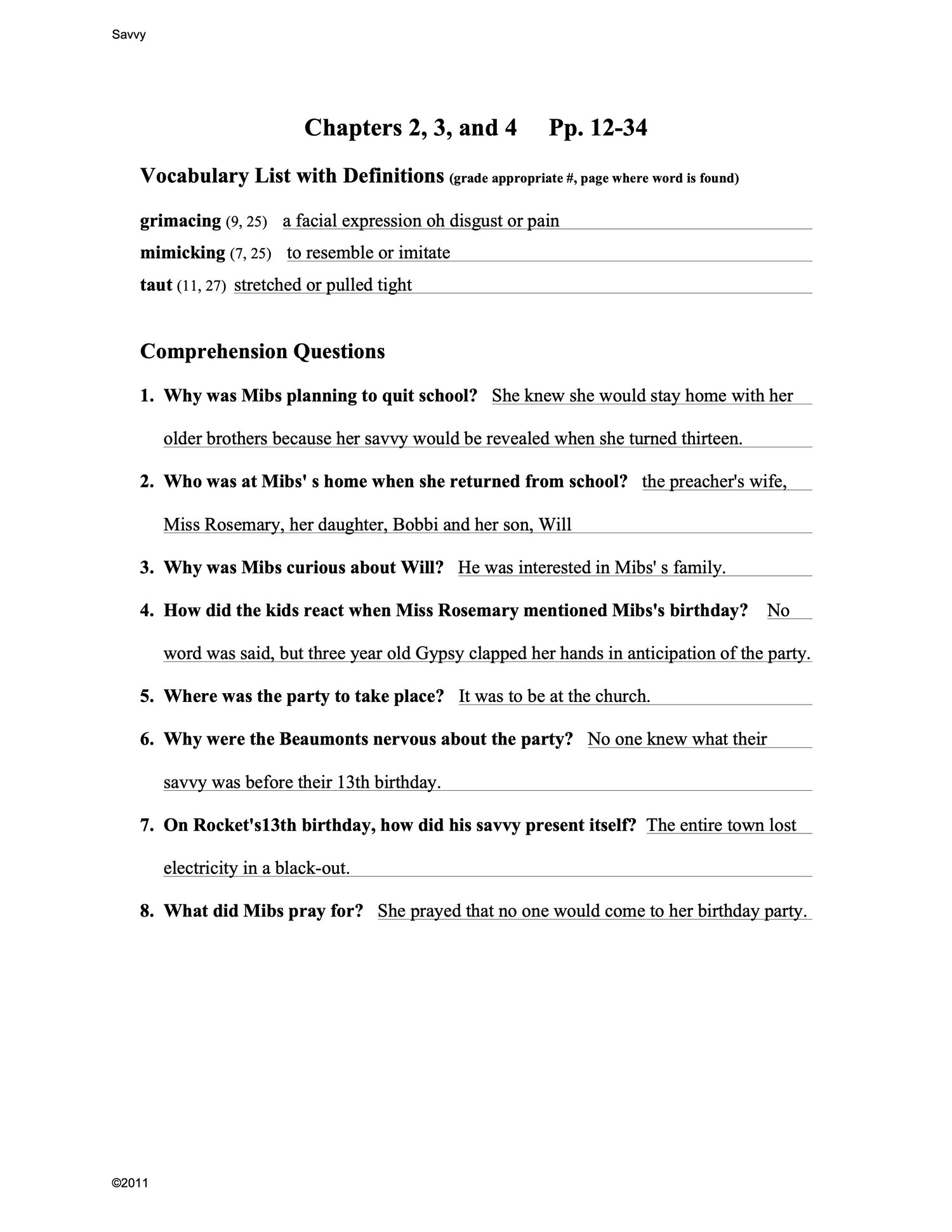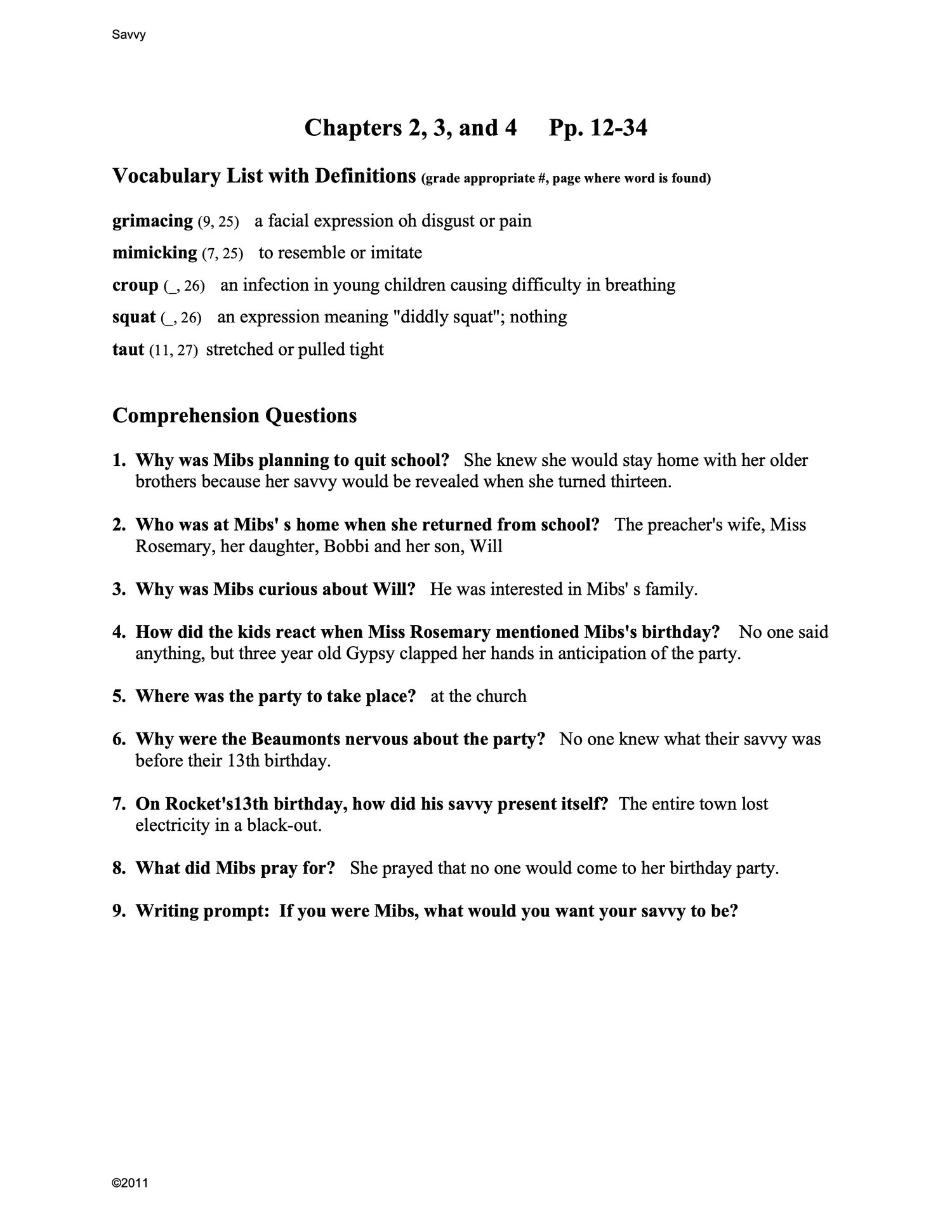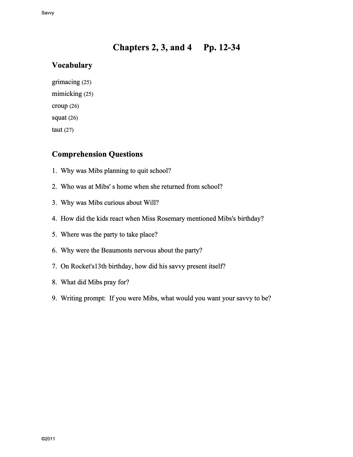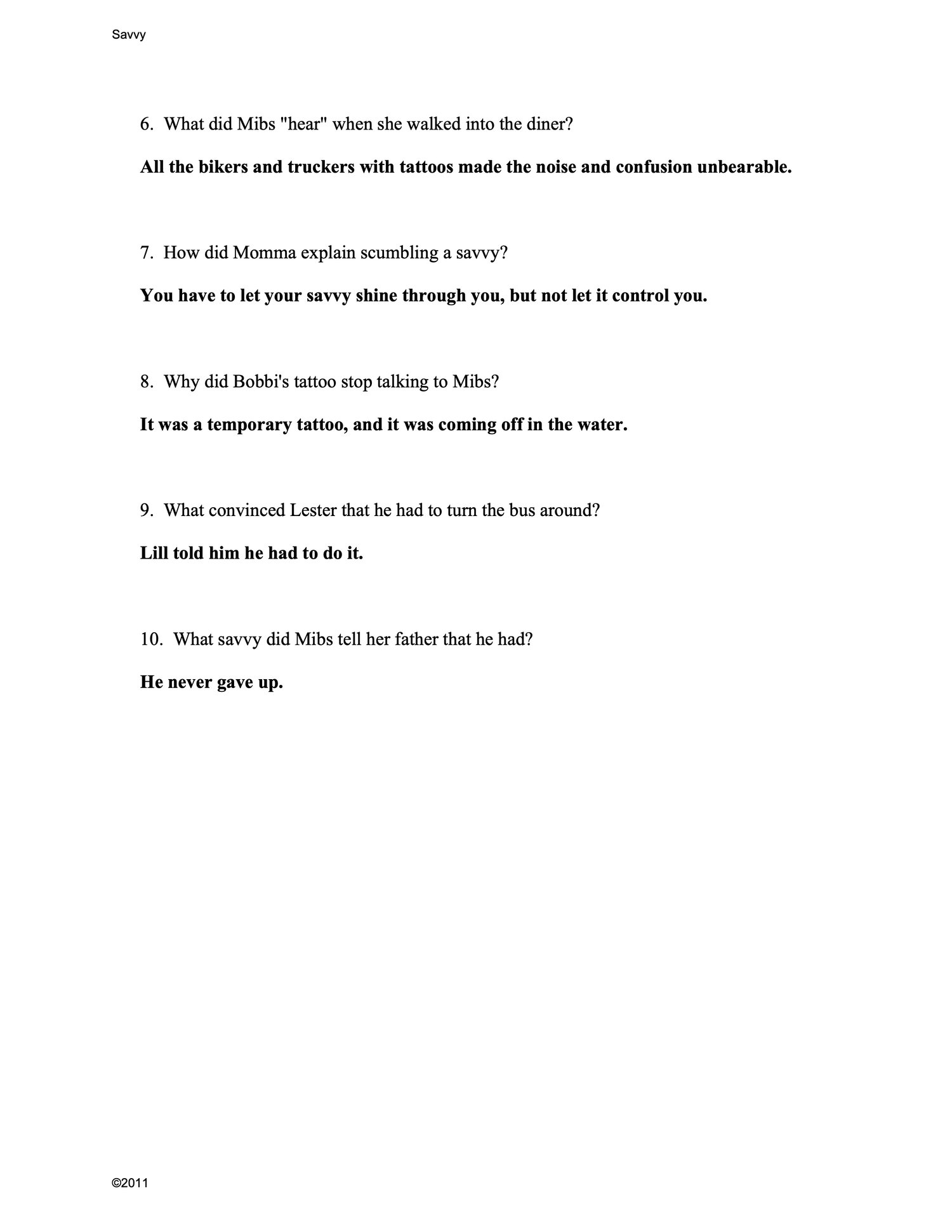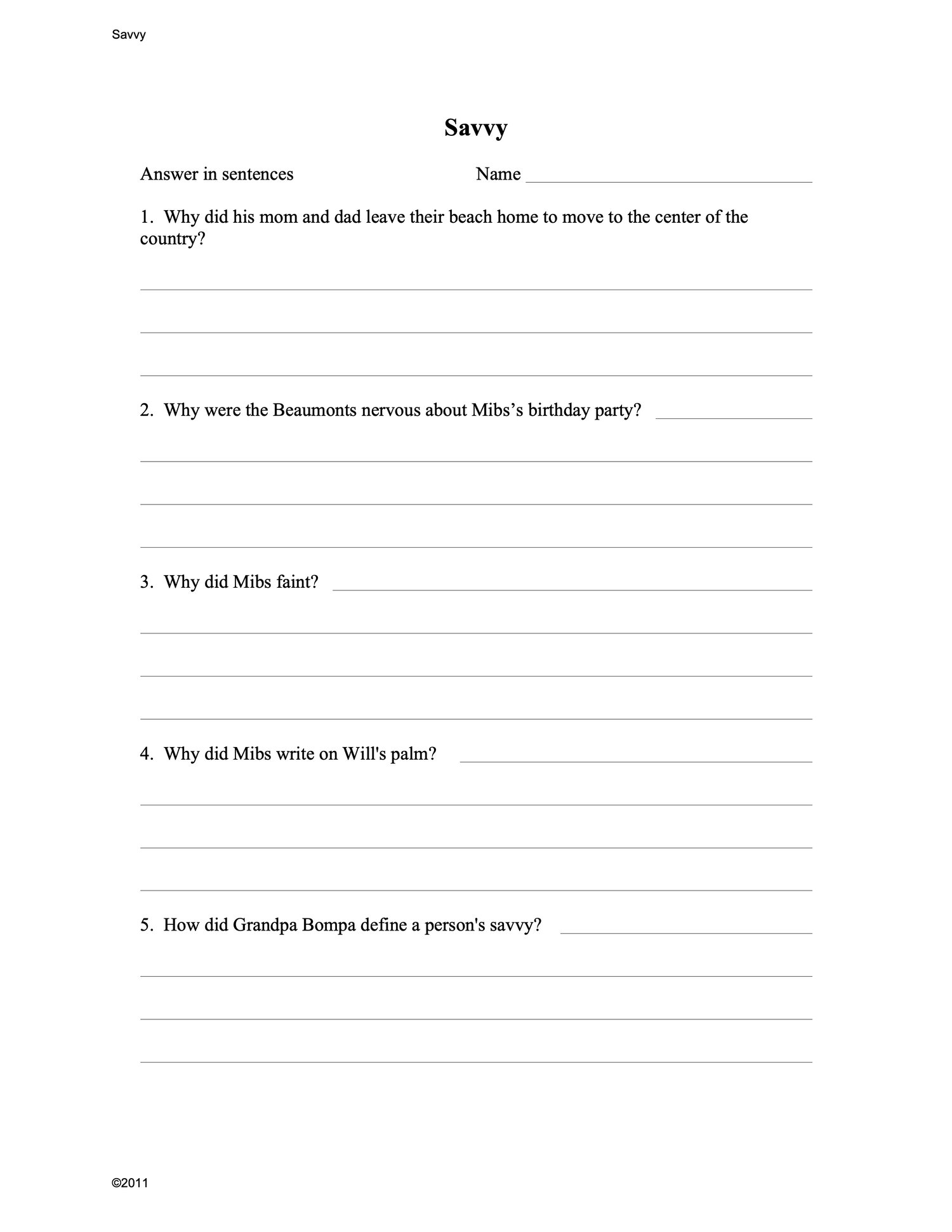 This Savvy Reading Comprehension Workbook workbook contains over 80 pages of reading comprehension worksheets for Savvy by Ingrid Law. Student Guide with answer key, Student Workbook with answer key, and a special “Key Questions” worksheet with answer key. Add to cart and download immediately, or save 90% when you purchase all of our reading comprehension workbooks together.