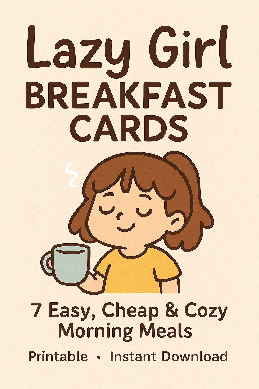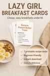 This printable pack includes 7 easy breakfast recipe cards designed for exhausted women, broke girls, busy moms, and anyone who wants good food without a ton of effort.