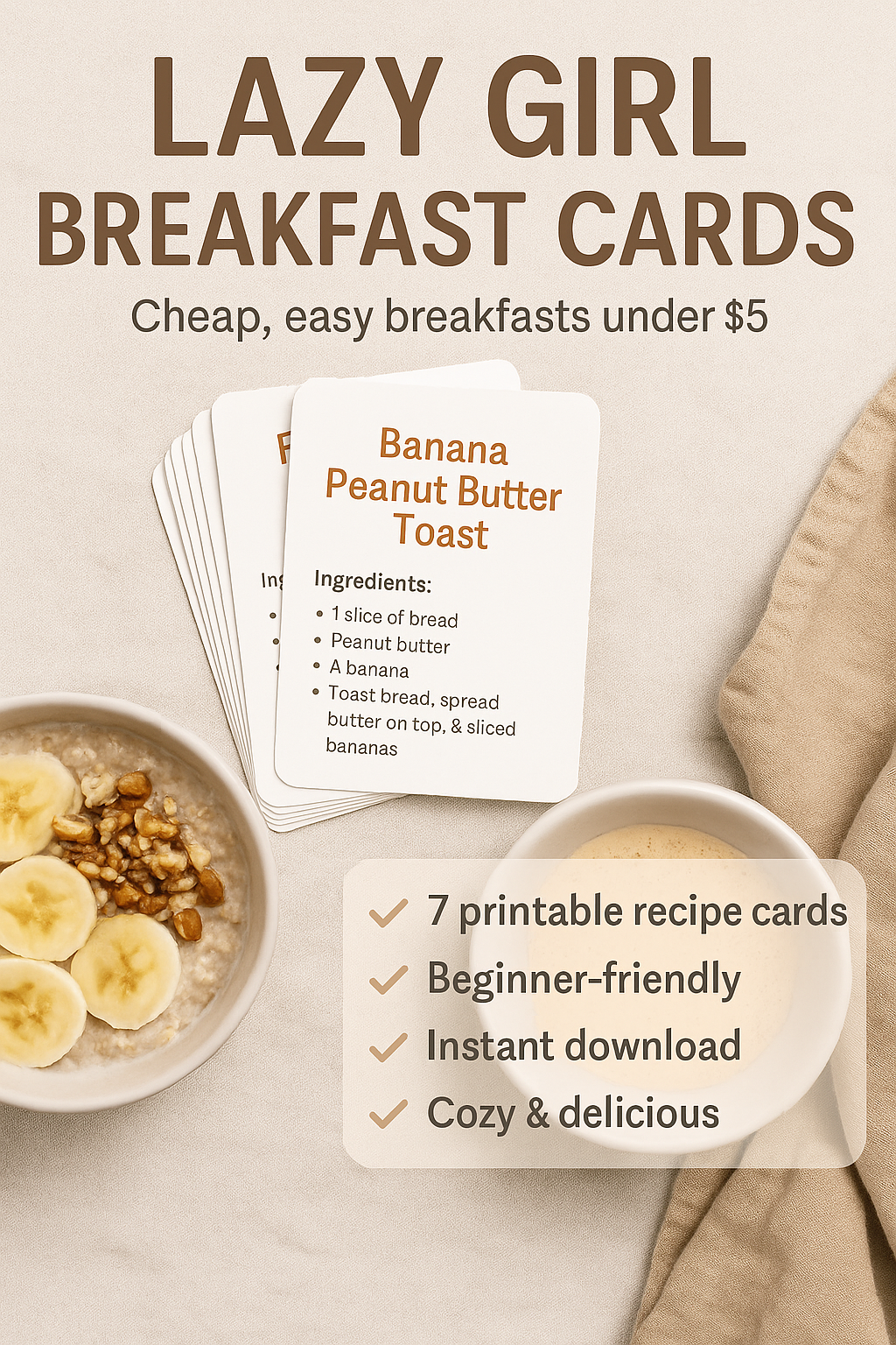 Lazy girl Breakfast Cards-7 Fast, Cheap & Cozy Breakfast Meals