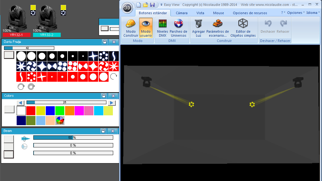 * Esta librería no reemplaza al Fixture de Freestyler o QLC+, sino que es un complemento para ver las secuencias en 3D. Es decir, hay que tener ya el Fixture de Freestyler o de QLC+ para los equipos.