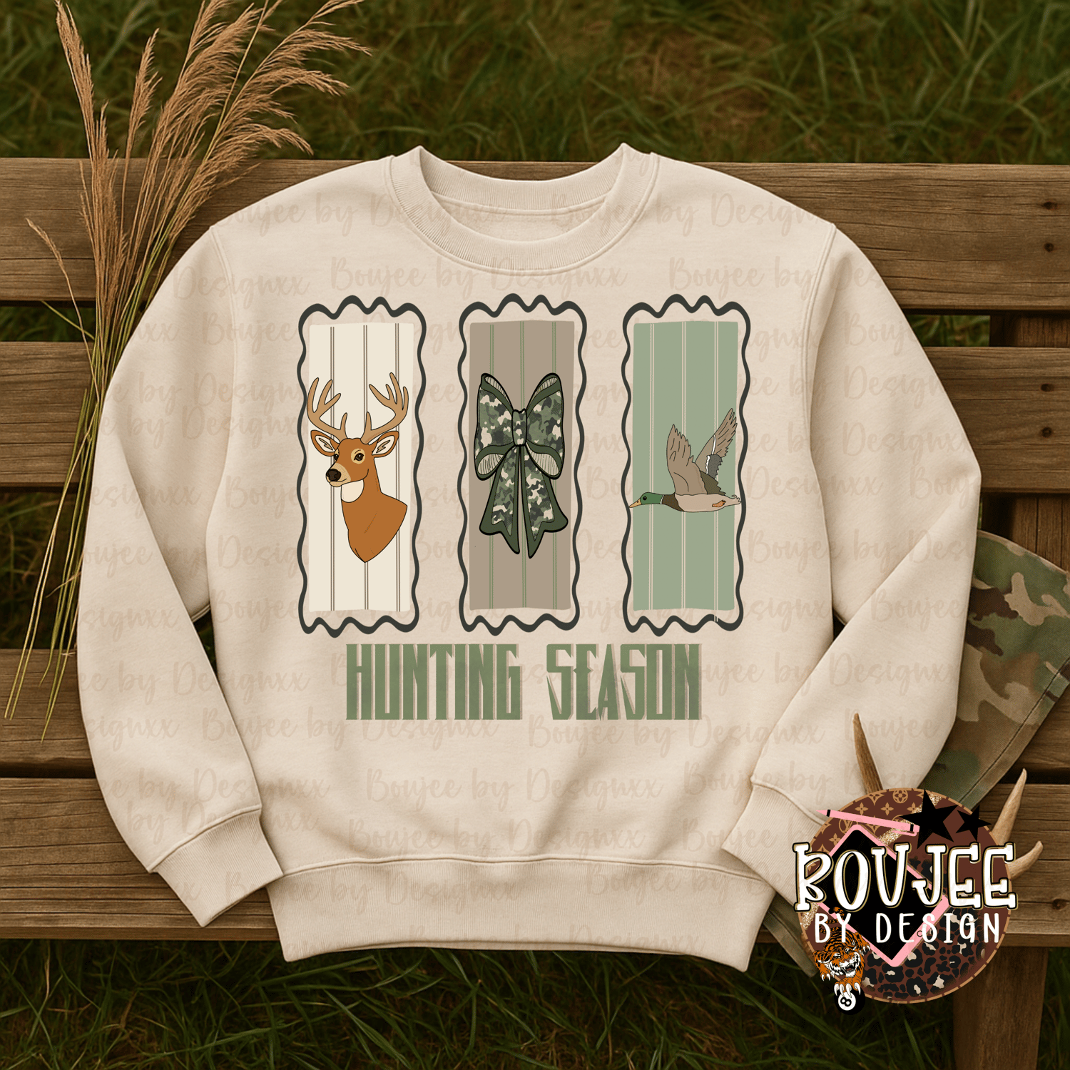 Hunting Season PNG | Rustic Deer, Duck & Camo Bow | Fall Outdoors Sublimation Design