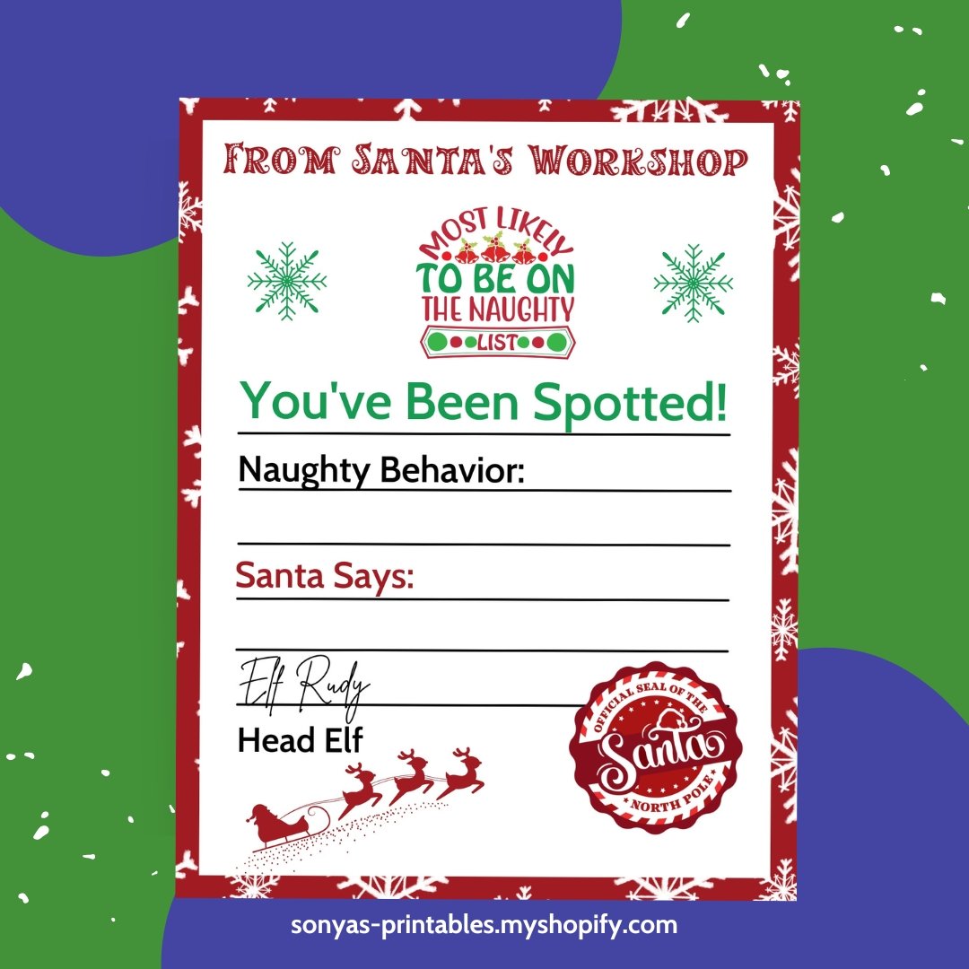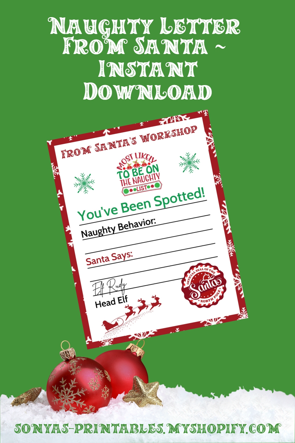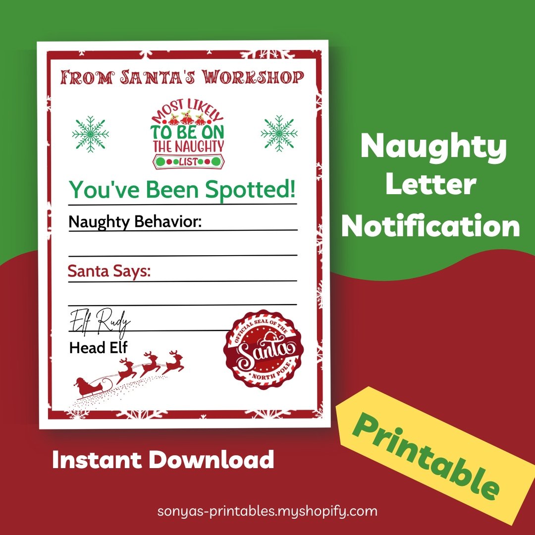 Santa's Naughty List Notification Letter | Naughty List Warning | Letter From Santa | Elf Warning Letter | Printable