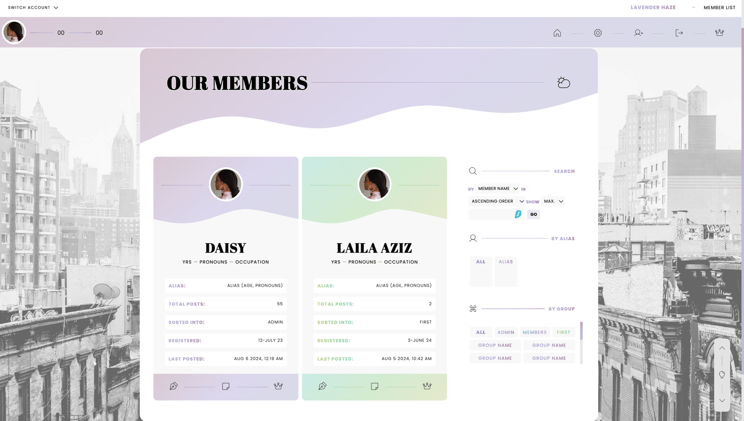 - fully customizable use of variables (including changing member group colours and font variables)