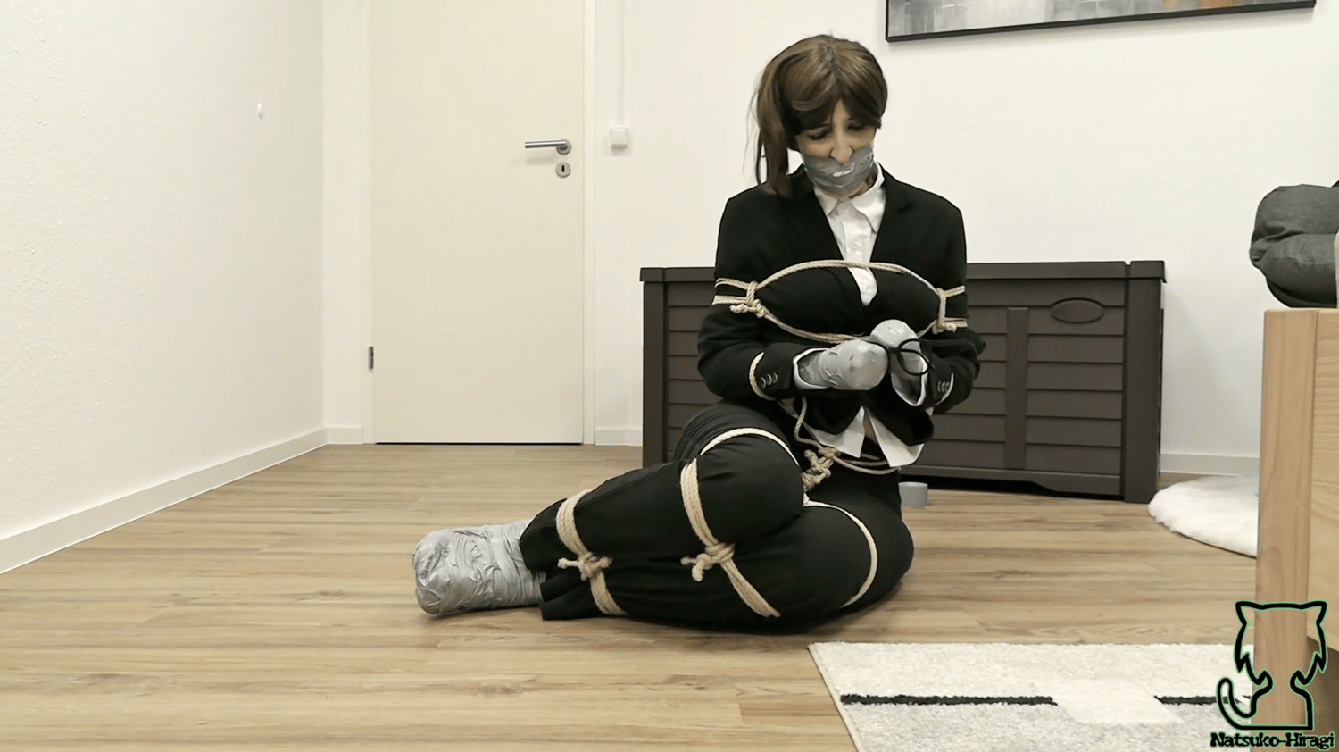 Video includes: Tape wrapgag, sock stuffgag, small soldiers inspired, rope bound, bondage, shibari, taped mittens, socked feet, heavy taped up feet, c. rope, struggling, moaning, gagtalk