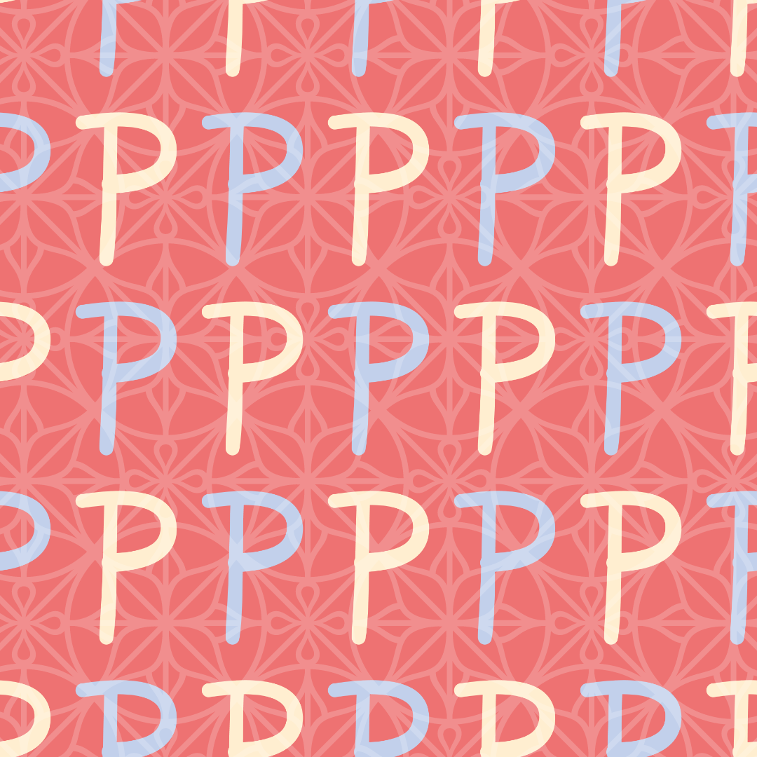 Upper case letter P vector repeat pattern. Capital lettering seamless illustration background.
