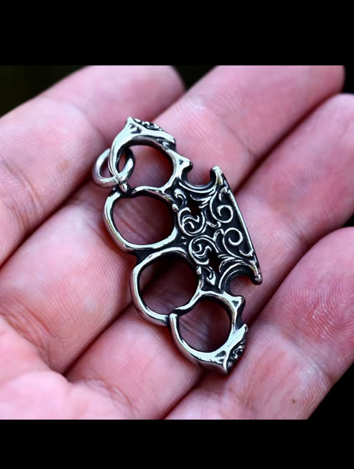 The pendant’s **brass-knuckles silhouette** adds a touch of rebellious punk attitude, making it the perfect statement piece for streetwear, rock, hip-hop, or motorcycle-inspired outfits. Its solid build and detailed craftsmanship make it not only a stylish accessory but also a symbol of strength and individuality.