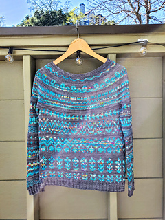 There are directions to make the body longer and the sleeves longer or shorter. You can make it tunic length or cropped. There is 1-3” of positive ease in this sweater so choose your desired finish measurement and knit the corresponding size.