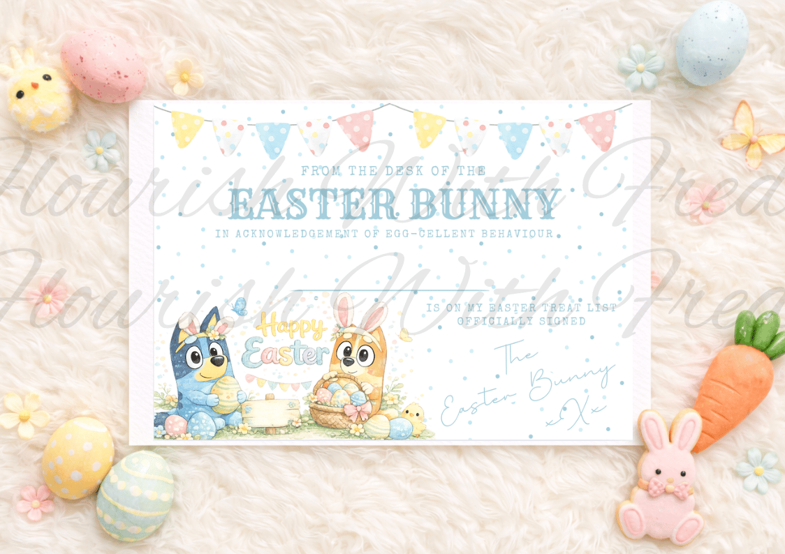 DIGITAL - BLUE EASTER - The Blue Guy Easter Certificate - You can also resize to print box stickers - simply click print - choose your size of paper!