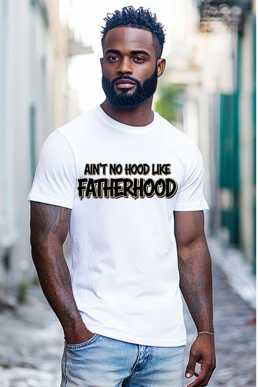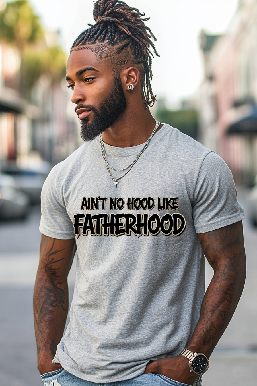 This “Ain’t No Hood Like Fatherhood” design blends bold typography with humor and pride, making it perfect for celebrating dads who show up, lead, and love hard.
