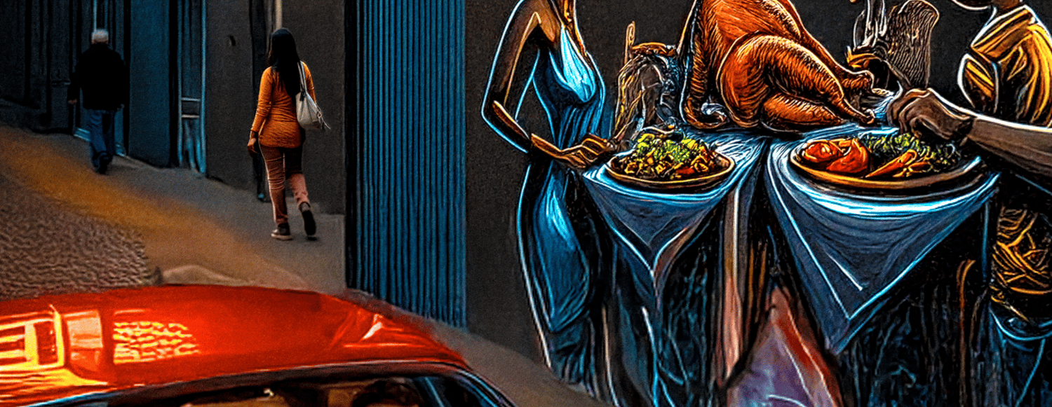 "Thanksgiving Street" is a testament to Klementsen's talent as a digital artist, showcasing his ability to take a culturally-specific subject matter and reinterpret it through a contemporary, cross-cultural lens. The result is a visually striking and emotionally resonant work that invites the viewer to reflect on the universality of human connection, gratitude and the joy of shared experiences.