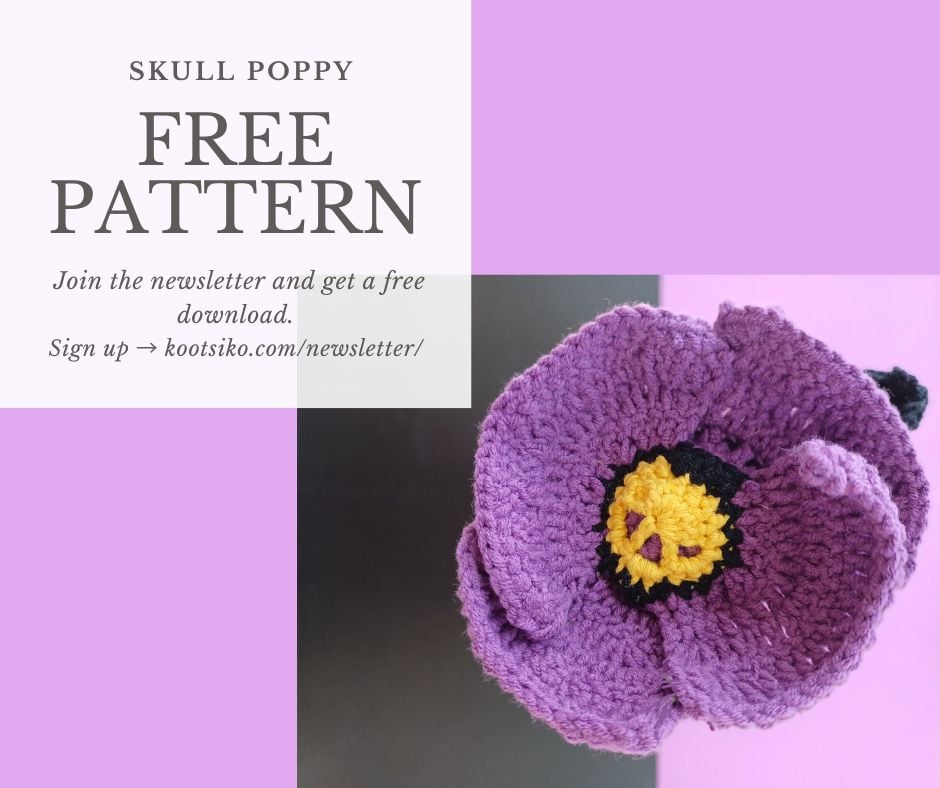 Sign up for our newsletter at kootsiko.com/newsletter and get Skull Poppy flower pattern as a welcome gift!