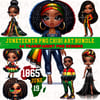 PNG Bundle, Juneteenth Chibi Style Transparent PNG Art Bundle, 44 Png Designs| Black American Chibi Designs, Happy Juneteenth