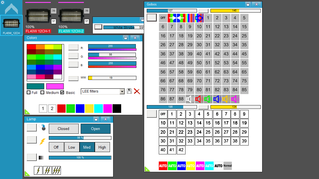 Librería para Freestyler DMX del Flash "GCM-FL40W" de GCM ( Strobe RGBW 4in1 8 Part 4-6-12-24-30CH ).