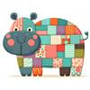 This product has 60 different Patchwork Hippo images for you to use in your journals, card making, scrap booking, or crafting.