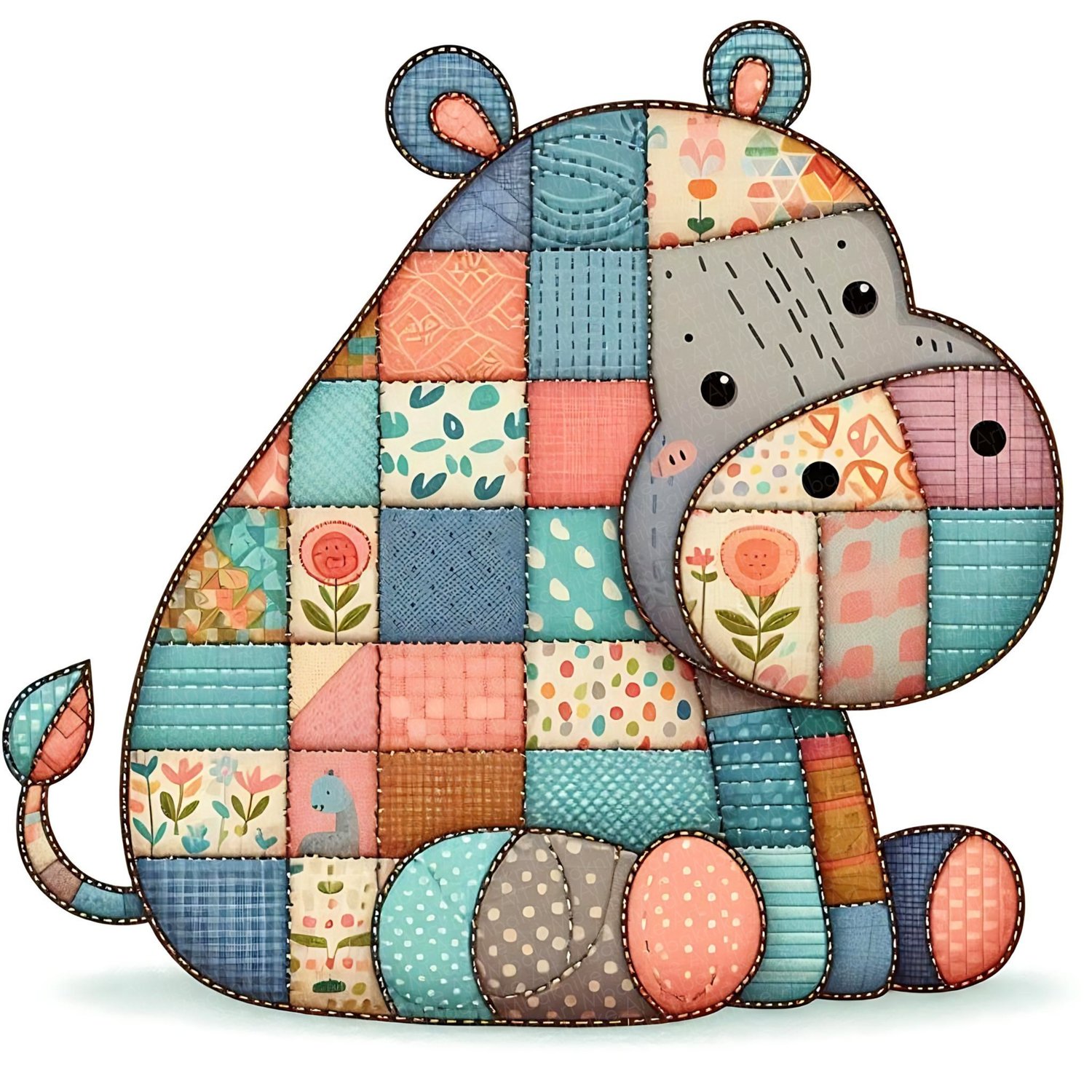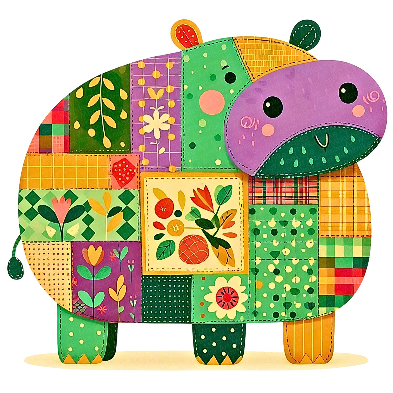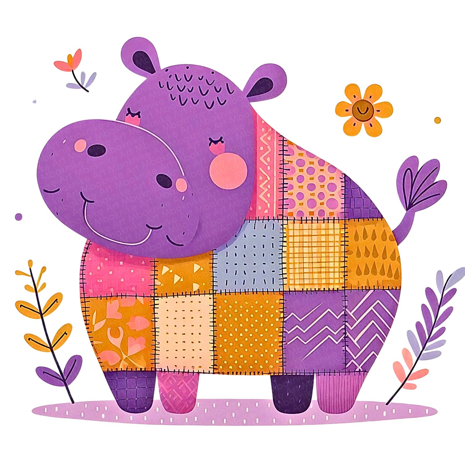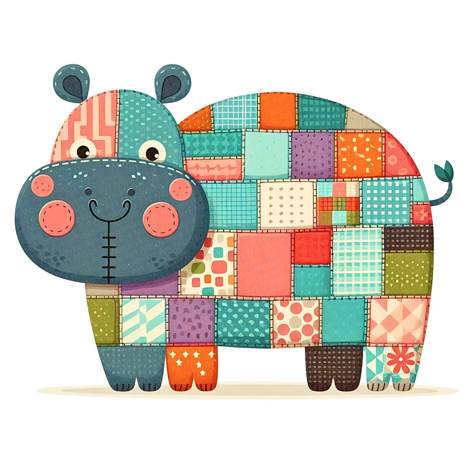 This digital product includes 60 images of Patchwork Hippo in JPG format, 4096x4096 px size.
