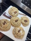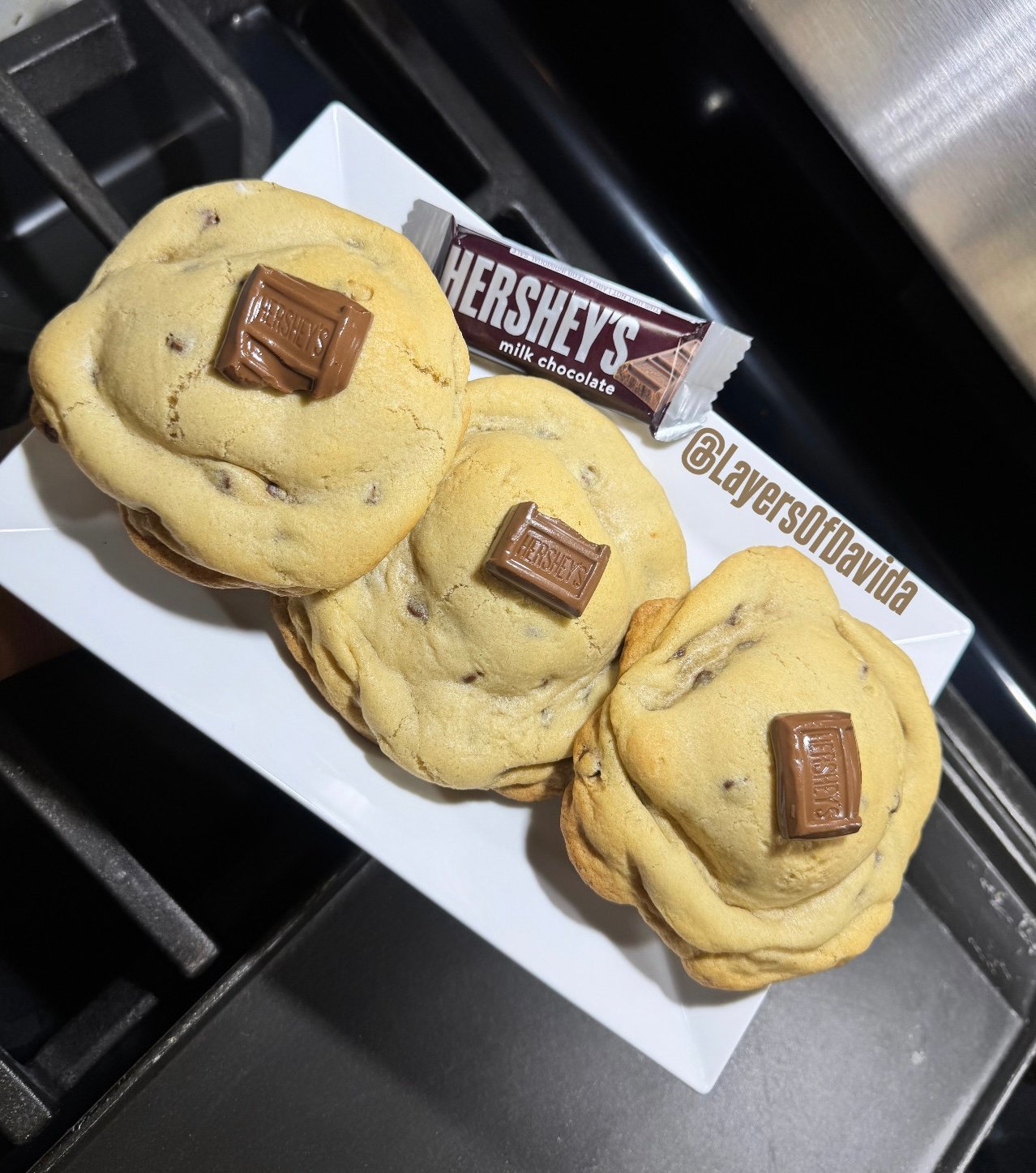 Everything you love about a campfire s’more baked into a warm, gooey cookie. Soft and chewy chocolate chip cookie dough is loaded with chunks of graham cracker, melty marshmallow, and rich Hershey’s chocolate pieces. Each bite is the perfect mix of crispy edges, soft centers, and nostalgic s’mores sweetness—no campfire required!