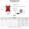 - Détails : Le rouge uni du corsage est magnifié par le col en V et les poignets bordés de fausse fourrure blanche (façon peluche).