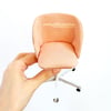 This miniature chair features an easy swivel mechanism that allows the chair to rotate.