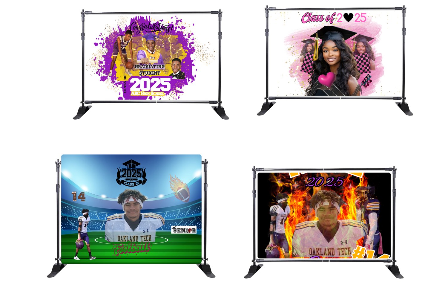 Various sizes. Step and repeat (stand) not included.