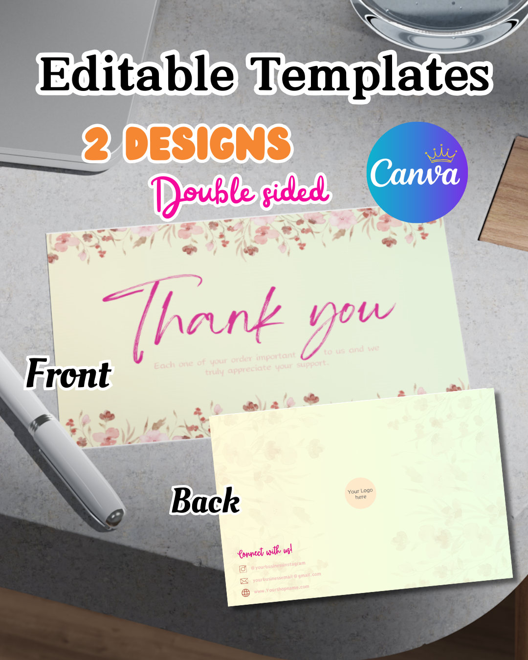 Editable CANVA pro, custom, thank you card templates for small business, etsy shop digital download