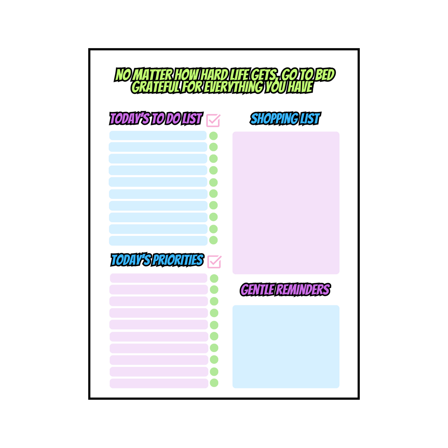 With a Digital Download that is easy to print and even re-print, you no longer have to worry or rely on technology to keep track of your daily tasks.