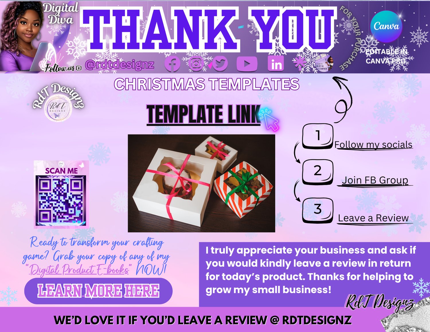 High-Quality Design: Our template features a sample Christmas design example, ensuring your treat boxes look professional and festive.