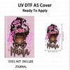 Celebrate culture, confidence, and creativity with this Black Girl UV DTF Transfer for A5 journals ✨ Featuring a stylish Black woman design, this ready-to-apply decal is perfect for journal lovers, planner decorators, and small business owners who love bold, empowering stationery.