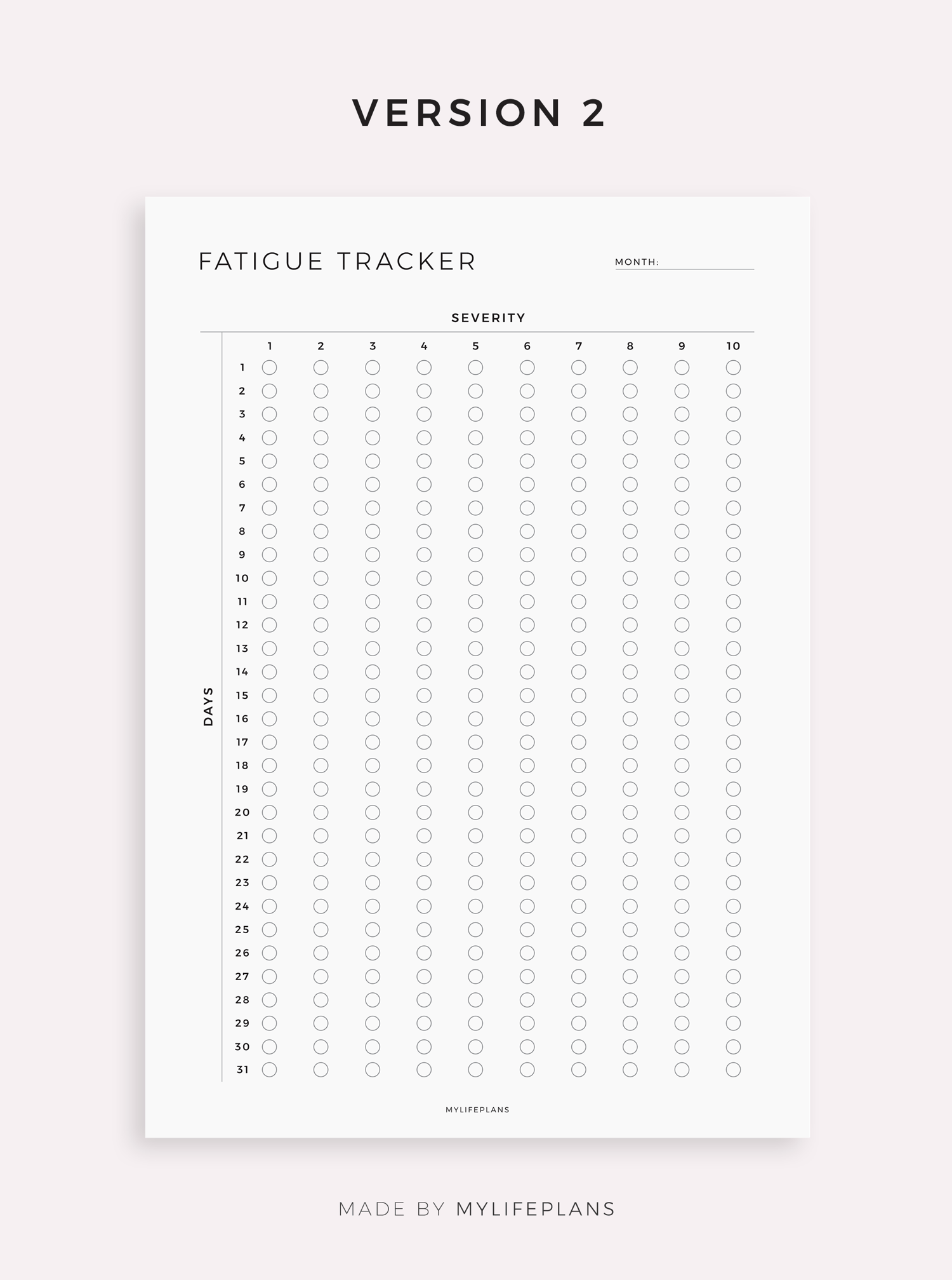 Monthly Fatigue Tracker Template for Remarkable, Supernote, Kindle Scribe, Boox, Kobo