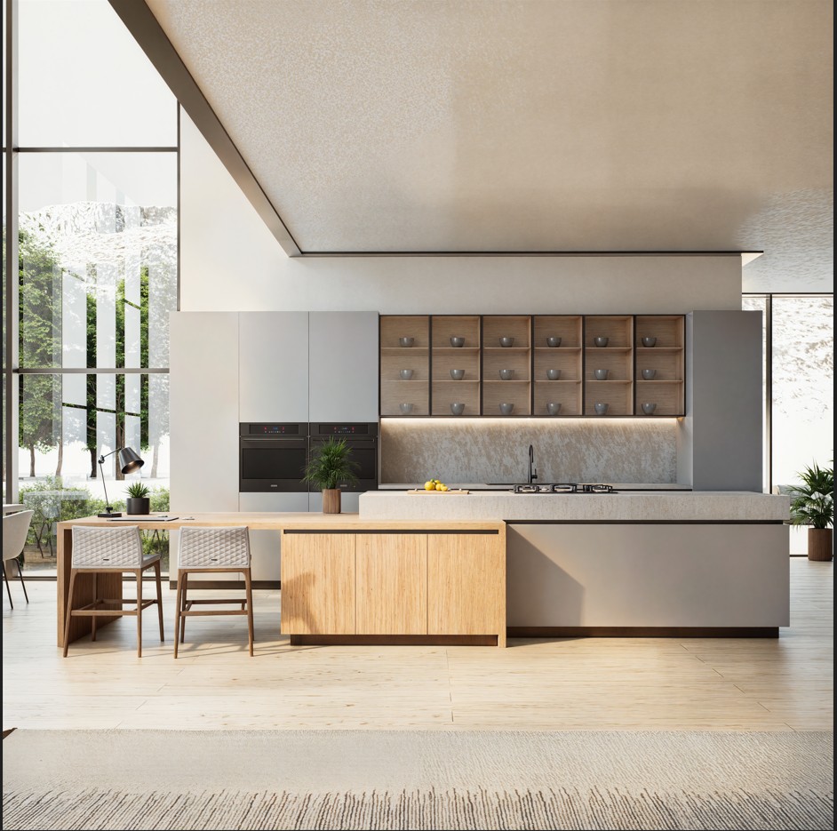 Bring your interior visualizations to life with this highly detailed D5 Render kitchen scene, showcasing a modern, warm, and minimalist design. The setup includes both day and night lighting variations, allowing for realistic renders with atmospheric depth.